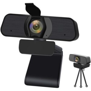 THEHORAE QHD PC Manual focus Webcam With Microphone – 2K/1440P Web Camera With Privacy Cover and Tripod 360° Rotating USB Plug and Play Camera For