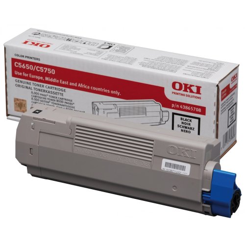 SummaryOKI TonerSuitable for Oki C5650/C5750High Capacity toner (8000 copies)1x Black tonerGenuine OKI (not compatible or remanufactured)Black Genuine Original OKI Toner Cartridge C5650 / C5750 p/n 43865708 Description